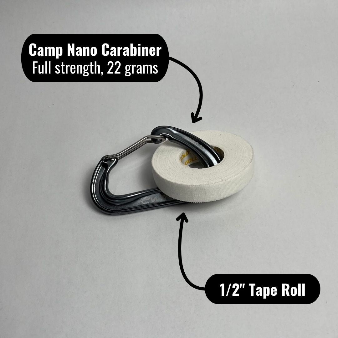 Details: 1/2" tape and Camp Nano 22 Carabiner