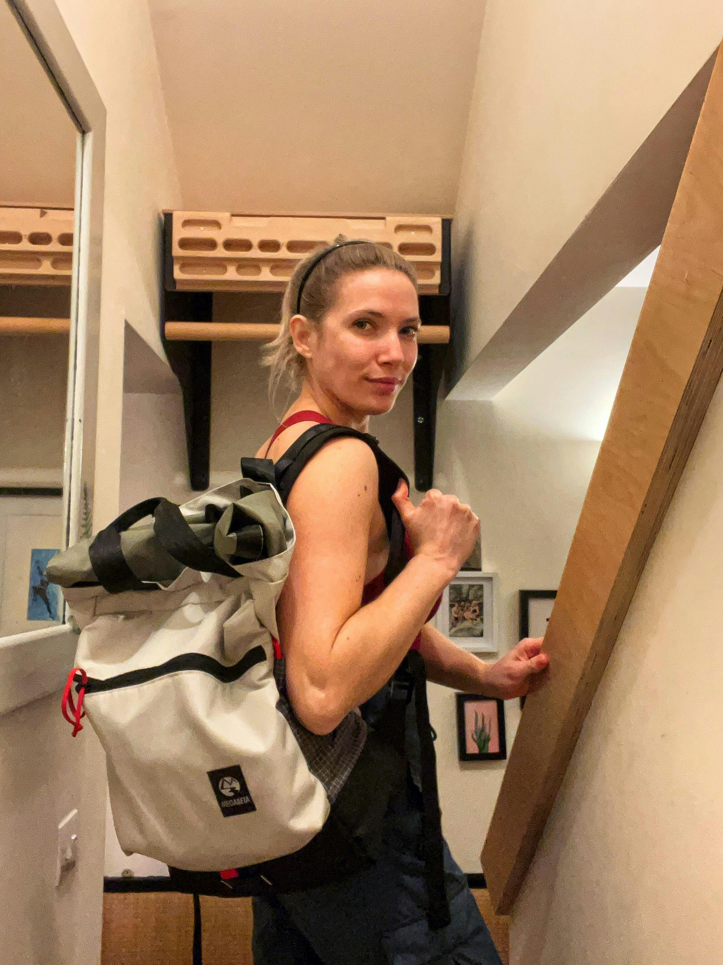- Storage: 24L, including the 5L front pocket for shoes + chalk